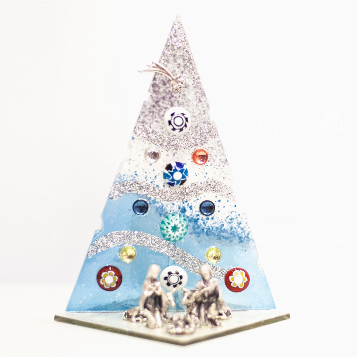 Albero di Natale in Vetro di Murano con Presepe e Murrine Veneziane Artigianato made in Tuscany made in Italy