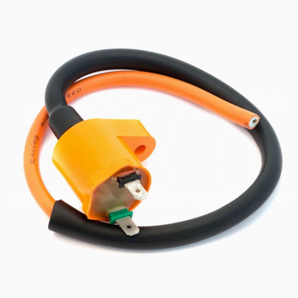 bobina Racing Arancio adatta a tutti i motori 4 tempi fino a 160cc , rispetto al modello standard ha una miglior qualità costruttiva e maggiore stabilità elettrica